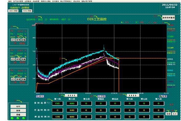 用來監(jiān)視某臺(tái)設(shè)備的工藝運(yùn)行的詳細(xì)情況,包括設(shè)定工藝,實(shí)際運(yùn)行情況運(yùn)行狀態(tài),運(yùn)行時(shí)間,并對(duì)設(shè)備實(shí)現(xiàn)分區(qū)控制。