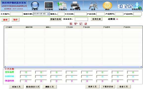 每批產(chǎn)品的編號(hào)、名稱圖號(hào)裝爐時(shí)間、出爐時(shí)間、數(shù)量、爐號(hào)、工藝代號(hào)、工藝員及操作員姓名等自動(dòng)存檔。